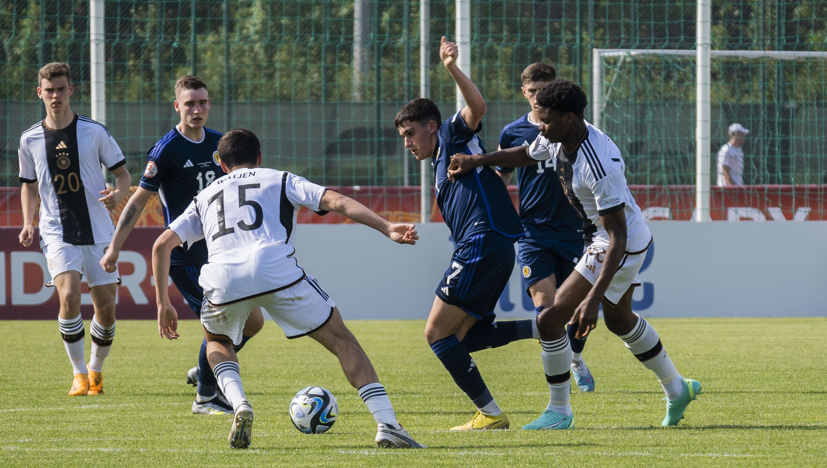 Just as injury time was announced, it became three for Germany as the high team press created a loose ball behind the Scotland defence for Kjell-Arik Watjen to meet and tap across goal.