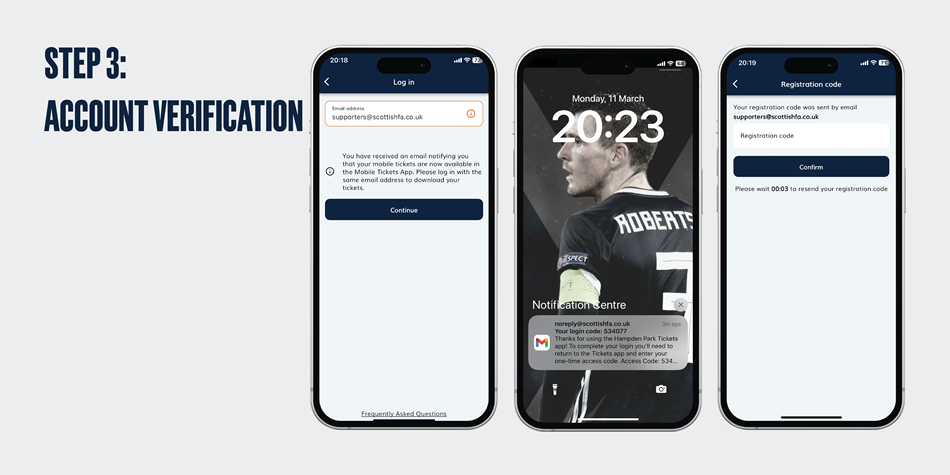 If you don’t receive your pin code straight away, please check your junk/spam folder for the email and also whitelist supporters@scottishfa.co.uk email address.