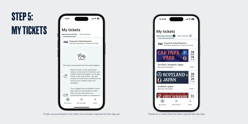 - Step 4: Matchday, Person B has both tickets on their app and can scan both supporters in.